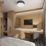 It was worth its 4 stars. We liked hotel's location and staff. The apartment was decorated with wooden furniture...